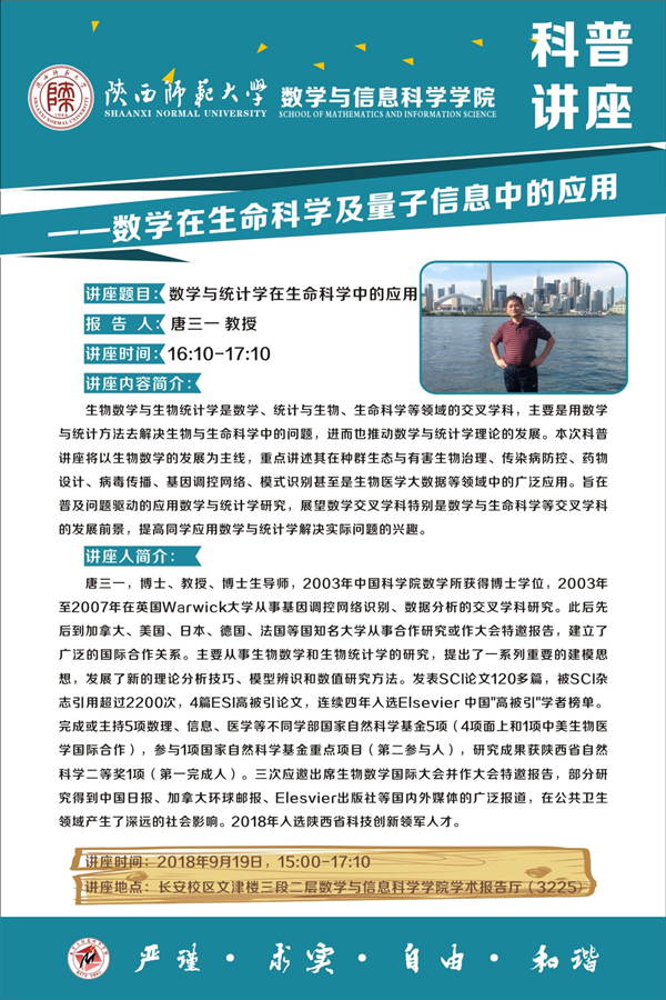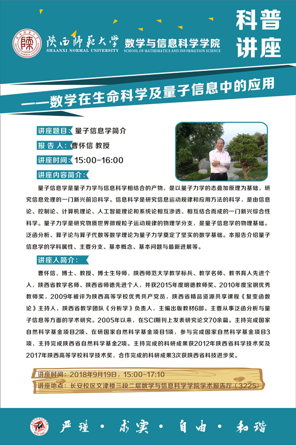 活动类别:科普讲座-数学在生命科学及量子信息中的应用