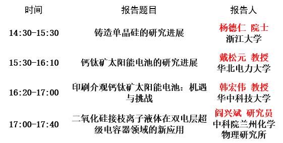 讲座人:杨德仁院士 戴松元教授 韩宏伟教授 阎兴斌研究员