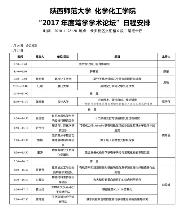活动类别:化学化工学院“2017年度笃学学术论坛”