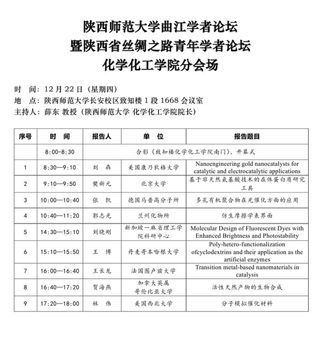 活动类别:开云kaiyun官方网站曲江学者论坛暨陕西省丝绸之路青年学者论坛/化学化工学院分会场