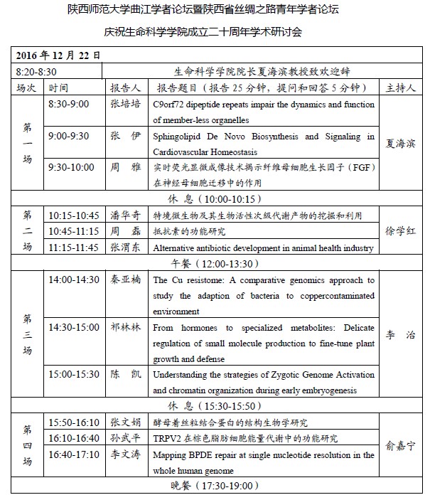 活动类别:开云kaiyun官方网站曲江学者论坛暨陕西省丝绸之路青年学者论坛/庆祝生命科学学院成立二十周年学术研讨会