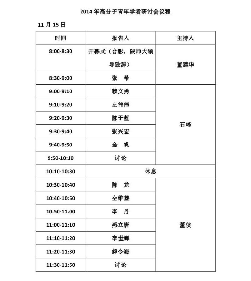 活动类别:国家自然科学基金委2014年高分子青年学者研讨会