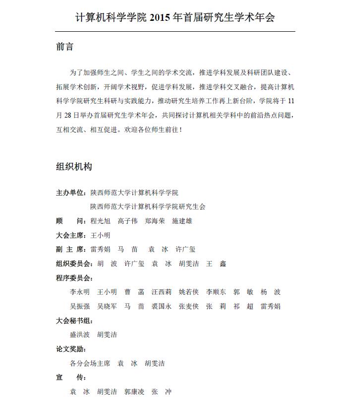 活动类别:计算机科学学院2015年首届研究生学术年会