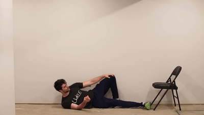 起身的时候,用力内收光滑地板上的那条腿,感觉内收肌的发力。