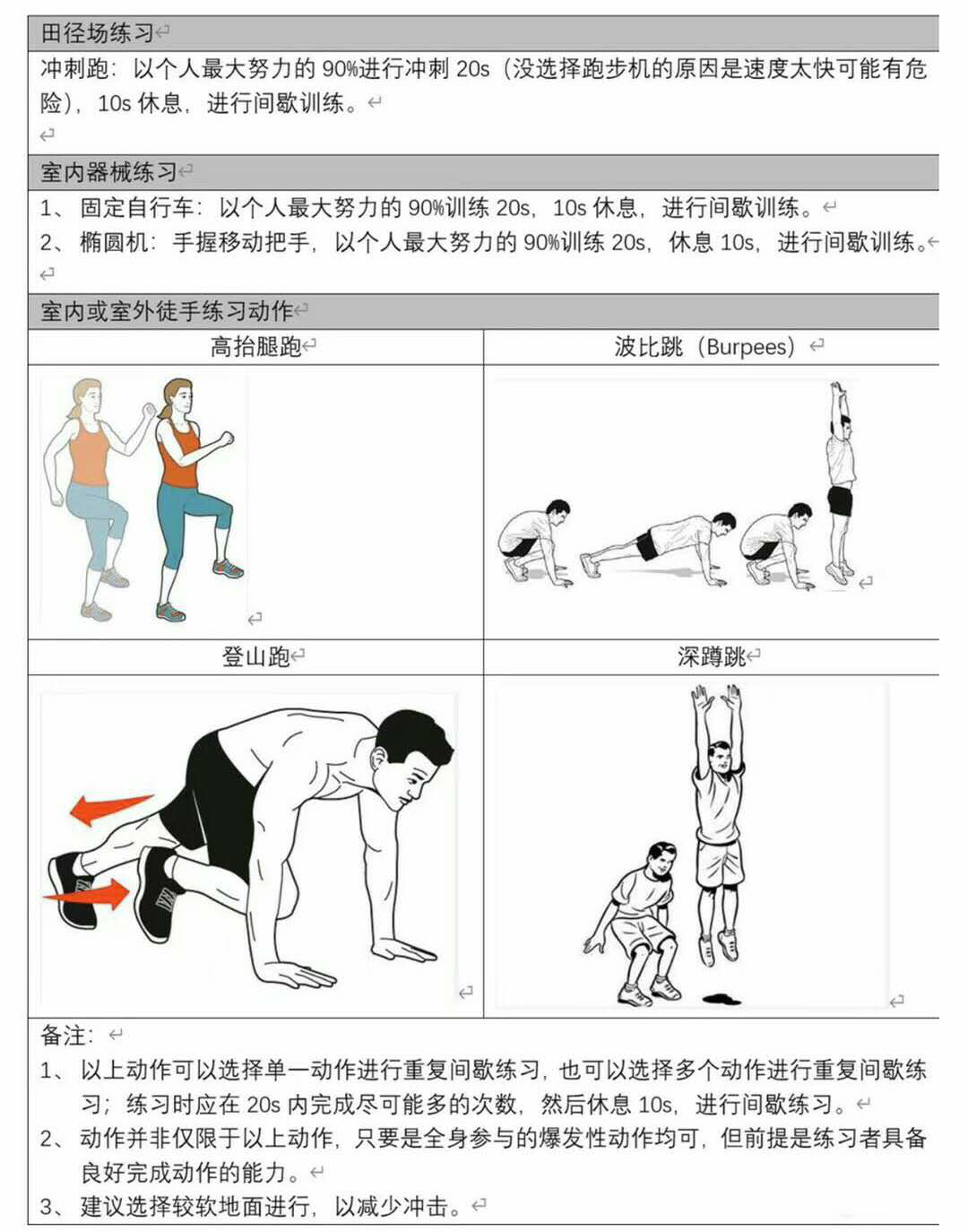 3.训练时间并非一定要进行8组,4分钟的训练。最初的实验是采用6-7组大强度、间歇性运动,总时间是3-3.5分钟。因此并不一定要做满8组,而是依个人体能状况做6-8组范围内即可。