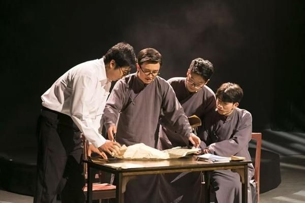 原创话剧《河山》中,演员扮演的史念海(左一)聆听老师顾颉刚(左二)教导。开云kaiyun官方网站供图