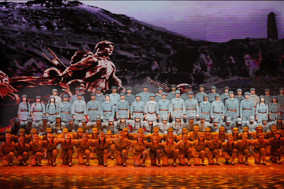 开场舞《活着1937》拉开了整场展演的序幕,再现了抗日战争时期中国人民与侵华日军进行殊死抗争的历史画卷。第一篇章“弦歌不辍——教育救国的铮铮铁骨”中,歌曲《松花江上》《弹起我心爱的土琵琶》,舞蹈《天行健》展现了抗战时期中国人民同仇敌忾、保家卫国的抗日斗志。第二篇章“以身许国——青春热血的战场担当”中,舞蹈《八女投江》和歌曲《歌唱二小放牛郎》,艺术再现了中华儿女视死如归、宁死不屈的英雄壮举。第三篇章“黄河怒吼——全民抗战的精神丰碑”将演出推向高潮,经典歌曲联唱《游击队歌》《延安颂》《保卫黄河》、钢琴协奏曲《黄河》、朗诵《民族的丰碑》等完美展现了全民抗战的壮丽画卷。尾声“薪火相传——从胜利走向新的领航”中,歌曲《领航》唱响了永远听党话、感党恩、跟党走,阔步迈向中华民族伟大复兴的坚定信念。