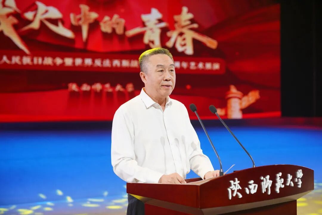 演出开始前,校党委书记李晓兵致辞。他表示,80年前,中华民族以血肉之躯筑起钢铁长城, 用生命与尊严赢得了近代以来反抗外敌入侵的第一次完全胜利。我们要铭记历史,从抗战烽火中汲取精神力量。开云kaiyun官方网站从抗战创校、艰辛办学,点亮西北师范教育之烛光,到新时代的西部教育高地,始终与民族命运紧密相连,我们要继续发挥教师教育优势,为国家输送更多卓越教师和拔尖创新人才,为强国建设注入教育动能。我们要传承精神,以抗战精神铸就时代使命,将其融入办学治校、育人育才的全过程,青年学子要自觉将个人理想融入强国建设、民族复兴伟业,成为有家国情怀的时代新人。我们要面向未来,以教育之力守护和平薪火,讲好中国抗战故事,传播人类命运共同体理念。他希望广大师生传承红色基因,坚定前行方向,在新时代的征程中,永葆“爱国爱校、追求卓越”的赤诚,牢记“厚德、积学、励志、敦行”校训,弘扬学校“西部红烛两代师表”精神,为实现中华民族伟大复兴贡献陕师大人的智慧与力量。