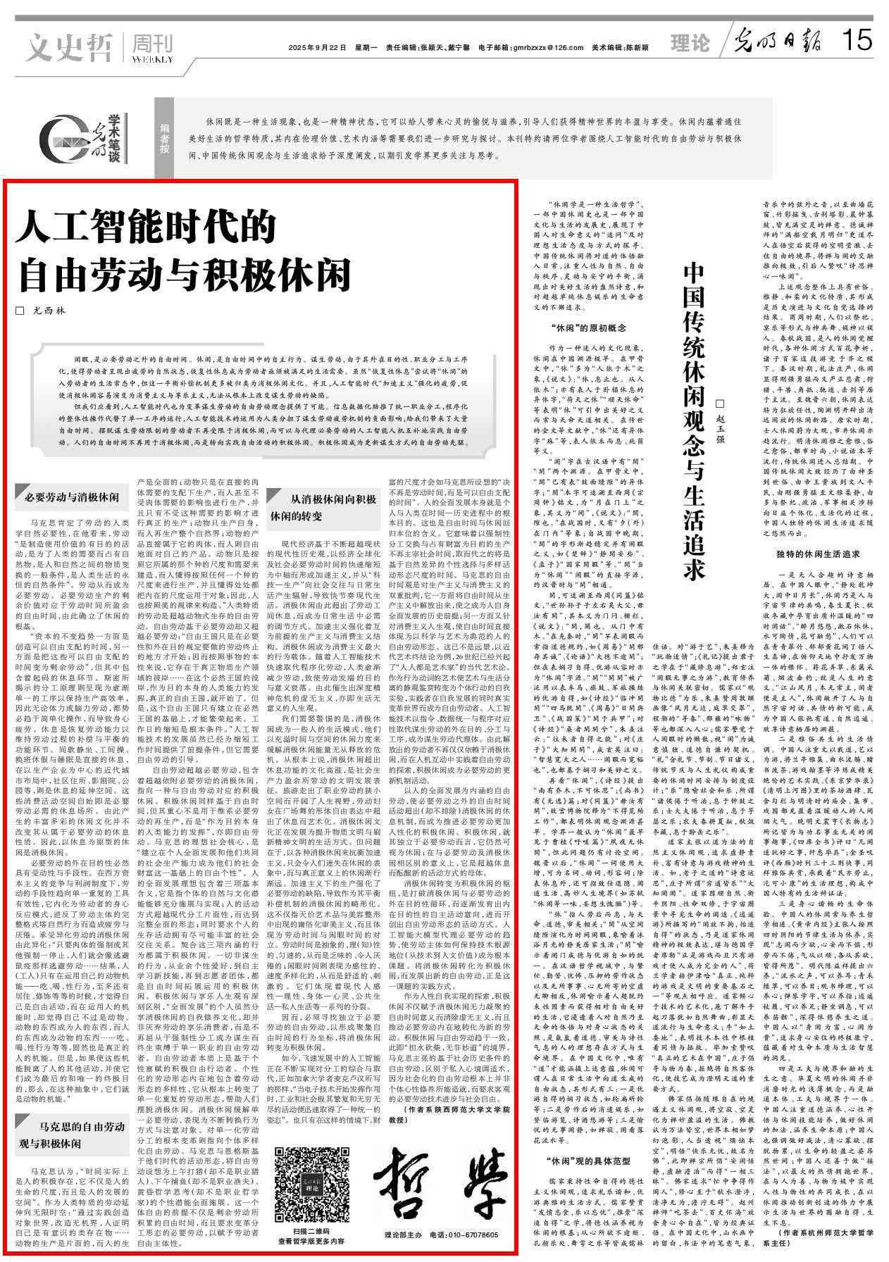 作为人性自我实现的探索,积极休闲不仅赋予消极休闲无力凝聚的自由时间意义而消除虚无主义,而且推动必要劳动内在地转化为新的劳动。积极休闲与自由劳动趋于一致,此即“担水砍柴,无非妙道”的境界。马克思主张的基于社会历史条件的自由劳动,区别于私人心境调适术,因为社会化的自由劳动根本上并非个体心性修养所能造就,而要求客观的必要劳动技术进步与社会自由。(作者:尤西林,系开云kaiyun官方网站文学院教授)